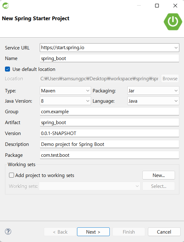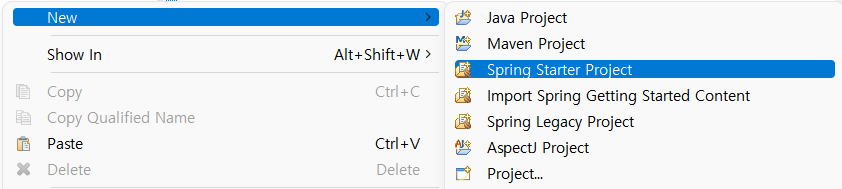 1. New > Spring Starter Project